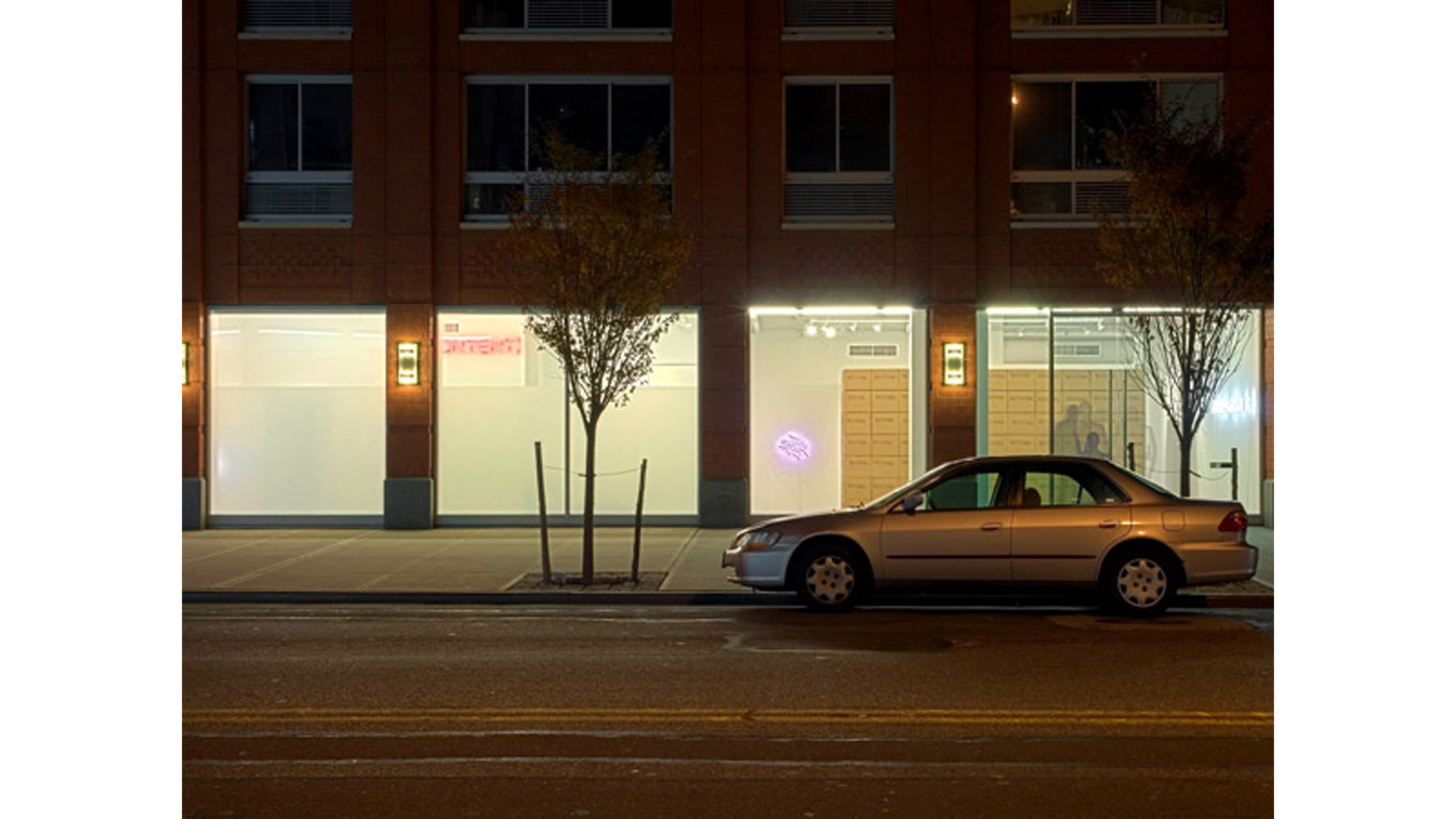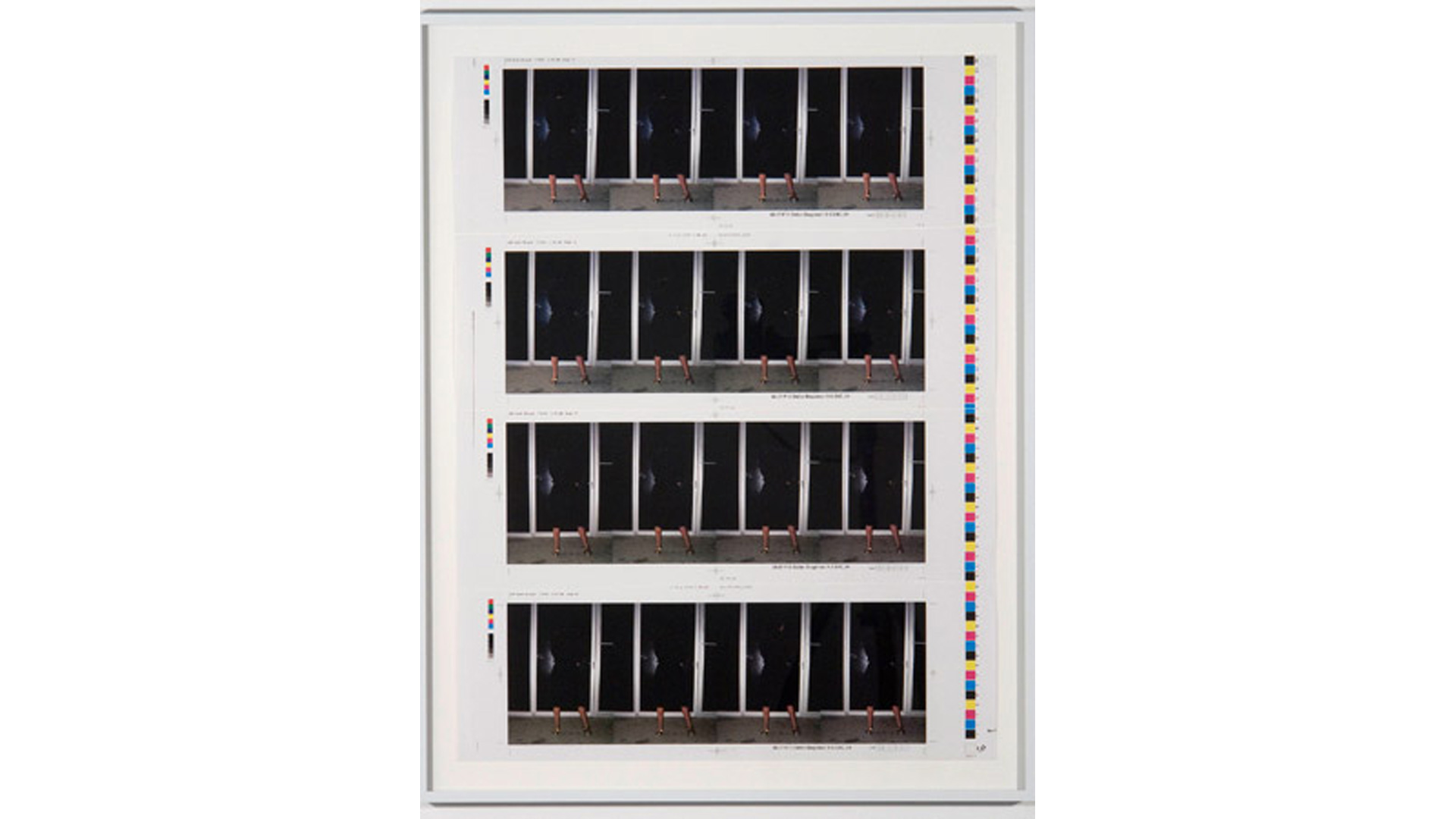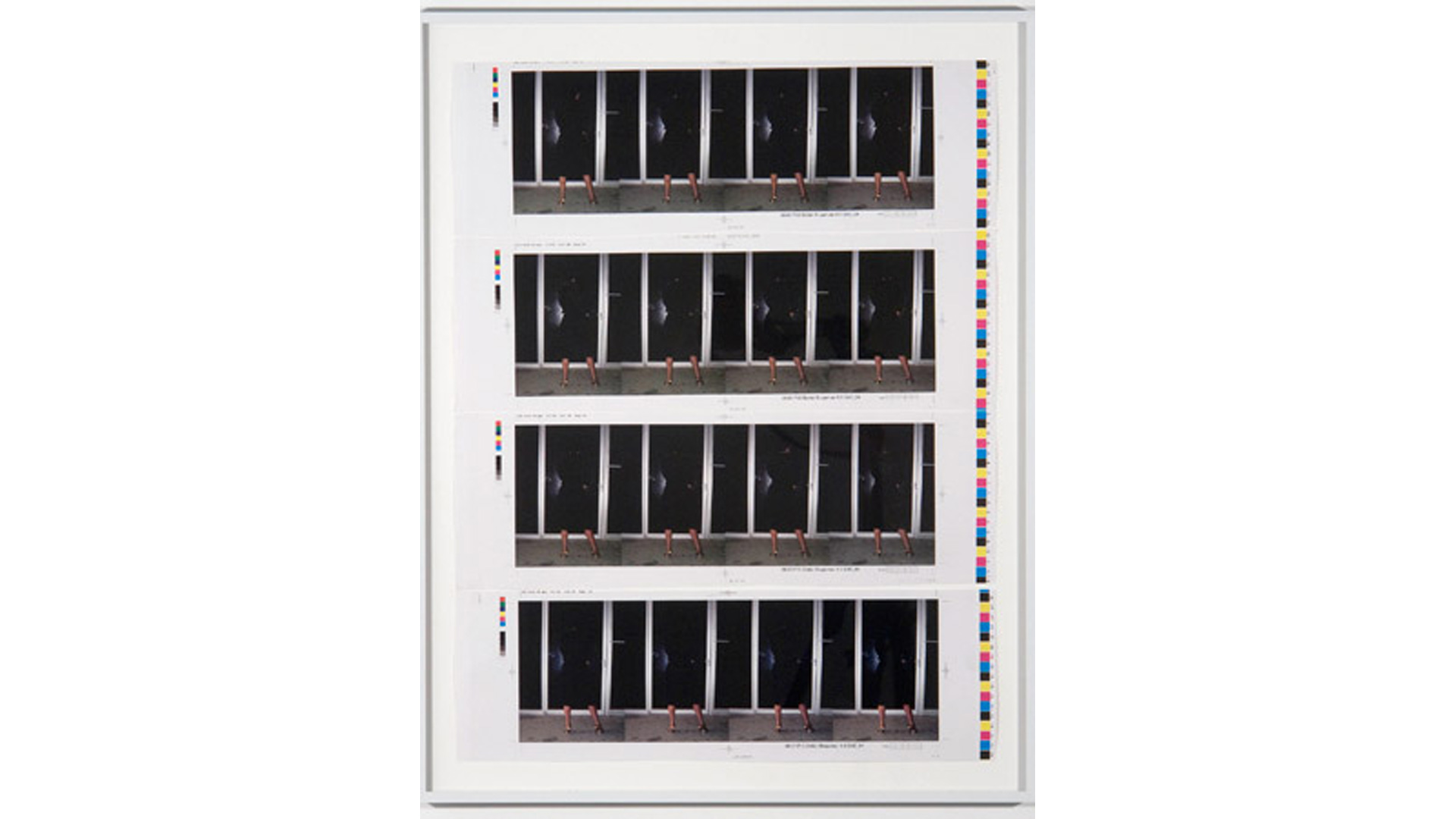 Brüggemann abstracts neons for the first time in a new series Obliteration. The scribbled neon text is a gestural analogy to writing and unwriting. NOTHING, a stack of eponymously inscribed cardboard boxes, explores the idea of the void, or rather, as proposed by the French writer Georges Perec, what surrounds the void; the box then serves as a reminder of a space that is beyond our knowledge and powers of description. The body as a vessel is also not exempt from inquiry in this show. Brüggemann´s OFF, a photographic work, shows a selection of frames depicting the rear view of a woman in black against a black background. Her silhouette seen again and again is repetition subtly traced against the dark scenery and the slightest differences in the subject's movement between the images is at the same time elusive and provocative.